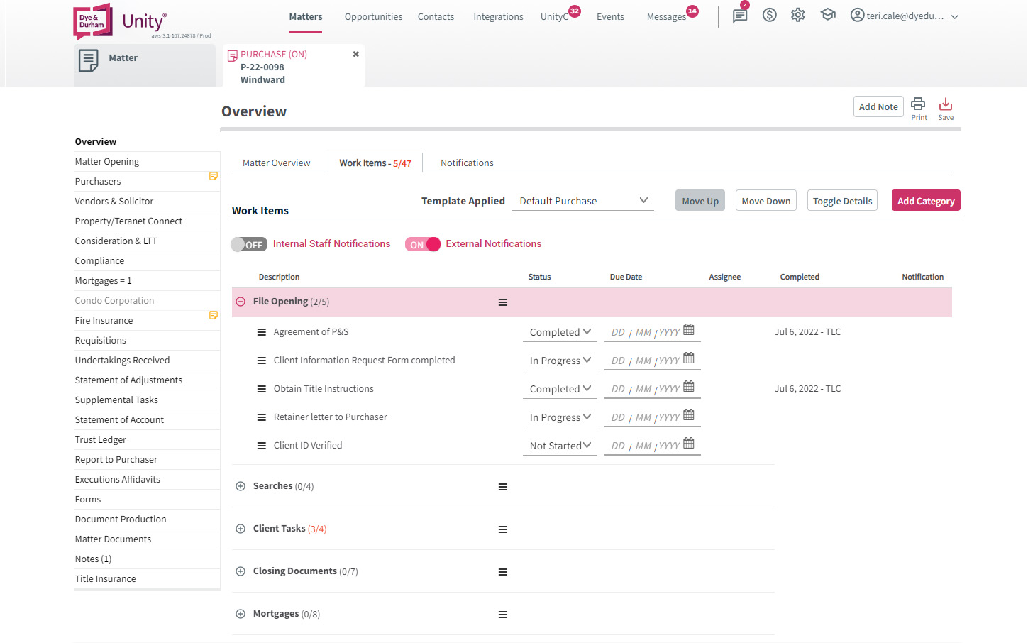 Unity® Practice Management is Canada’s leading practice management solution with the most feature rich conveyancing workflows and integrations built in.